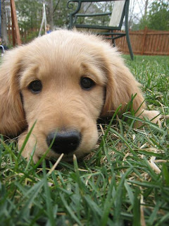 She's 8 weeks now and looks so much bigger. She now knows the "down" command (most of the time) and whines at the door to go out about half the time. (I usually manage to catch her in time the other half.) Once she's had more of her shots, we can start puppy obedience classes.